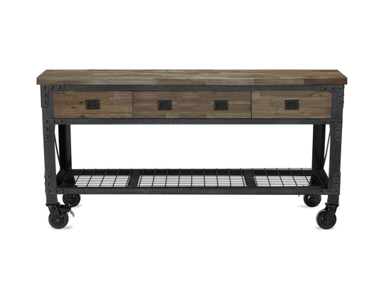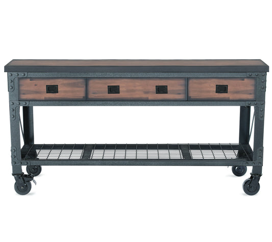 Duramax Rolling Industrial Workbench 72 In x 24 In. 3 Drawer with Wood Top - Aged Macadamia